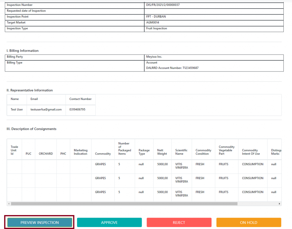 The Phytosanitary Inspection (DALRRD) can be accessed via the URL: https://app.ecert.co.za