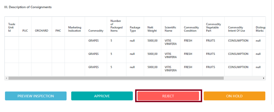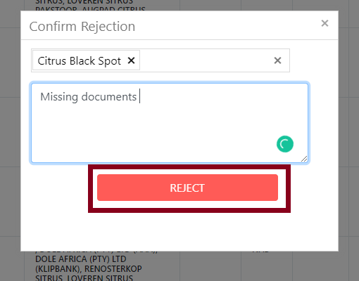 - Enter any additional information on why the application is rejected in the textbox provided.