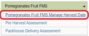 - Select Pomegranates Fruit FMS Manage Harvest Date